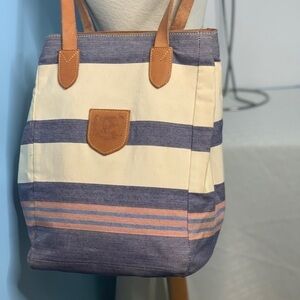 Vintage Ralph LAURN red with and blue striped canvas with leather trim tote.