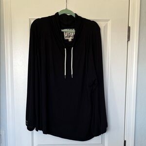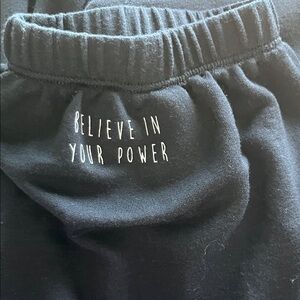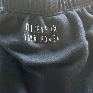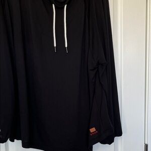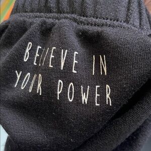 Chic black hoodie with drawstring detail. Inspirational message on sleeve; balloon sleeves. Soft and comfortable fabric. Ideal for casual wear. EUC