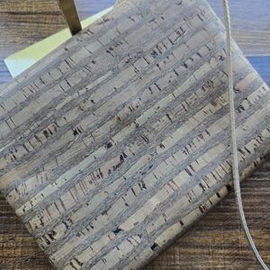 Stylish brown cork handbag with a matching pouch. Includes beauty products for a complete look.
