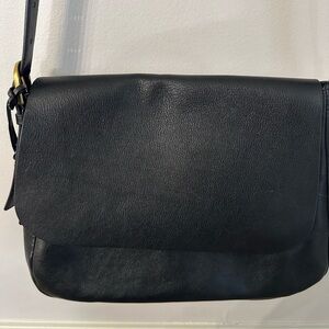 Fossil Women’s Black Leather Satchel Style Zippered Crossbody Purse GUC