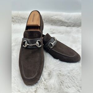 Gucci Men's Horse-bit accent suede driver brown Loafers 8.5 D