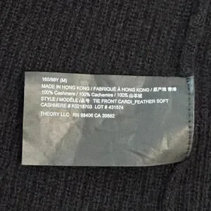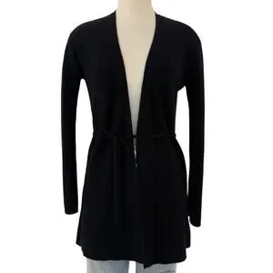 Theory Cashmere Tie Front Cardigan Feather Soft Black Tunic Sweater Size M