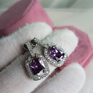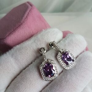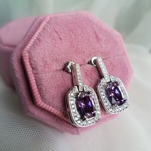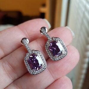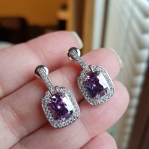 #swarovski #crystal #drop #earrings #set #halo #emeraldcut #amethyst #purple #bridal #bridesmaid #wedding #party #datenight #blacktie #prom #classy #classic #birthday #gift #birthstone #fashion #trendy #accessories