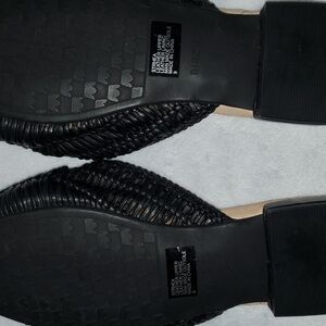Layers of cushioning ground this pointy-toe, woven leather mule, that absorbs shock with each step.