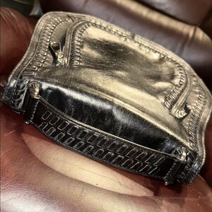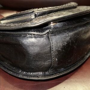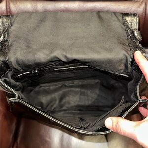 —There is a light scratch mark on the front pocket that’s hard to see due to the way the light bounces off the leather (see photos 1, 2 & 3)