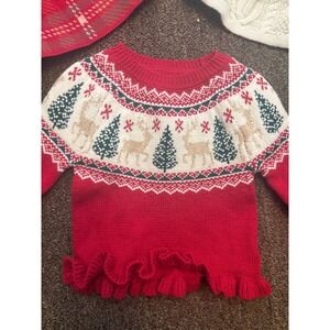 Keywords: Tahari Kids, Christmas sweater, reindeer, Christmas trees, Fair Isle, ruffle, plaid skirt, cable knit skirt, corduroy skirt, holiday outfit, winter wear, festive, girls apparel, toddler clothes