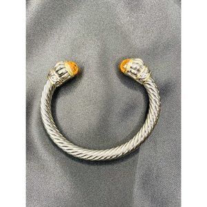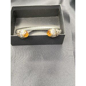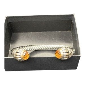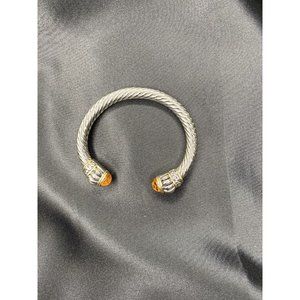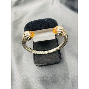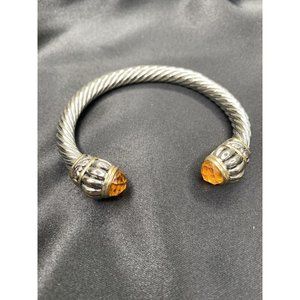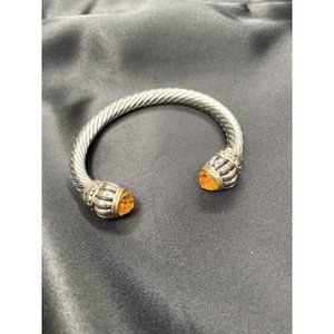 Mogul Style Gripoix Silver Tone Twisted Cable Cuff Bracelet With Amber Cabochon