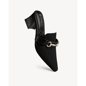 🆕Mousse Fit Black Mesh Knit Mules Women’s Pointed Toe Block Heel Slip-On Slides