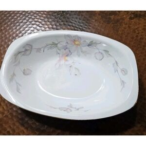 Epiag Pastelle 9" Rectangular Serving Bowl Czech Porcelain Floral Gold Trim