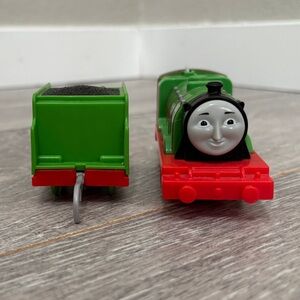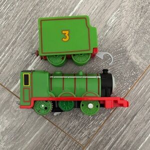 Henry and his tender from Thomas and Friends! Motorized trackmaster train. Tested and works, batteries not included. Good preloved condition, please review photos closely.