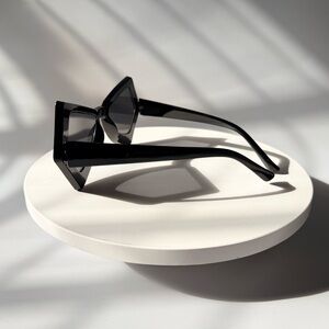 Step up your fashion game with these sleek black designer sunglasses. Perfect for adding a touch of elegance to any outfit. Drawstring pouch included.