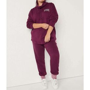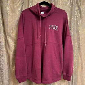 PINK Victorias Secret Maroon Varsity Cowl Neck Hooded Sweater Large
