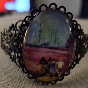 Artistic vintage-inspired bracelet featuring the Wizard of Oz. Handmade, featuring a unique design with a blend of bright colors, this piece adds an artistic touch to any outfit.