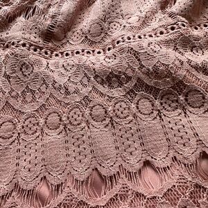 Beautiful blush pink lace mini dress with intricate floral detailing. Short sleeves, flattering waistline, and scalloped hem make this the perfect dress for date night, weddings, or brunch. Fully lined except for sleeves. Preloved but in great condition with lots of wear left.