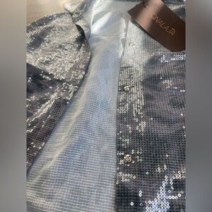 All-over silver sequin mesh with REAL!! ostrich feather cuffs.