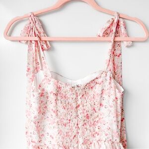 Pink floral print. Button design in the front. Sleeves tie into a bow and are adjustable. Lined. Bought in Korea.
