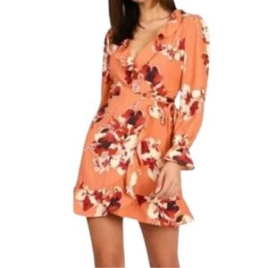 Honey Punch Floral Ruffle Wrap Dress Romantic Feminine Sexy Flowy Sz Med Girly