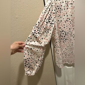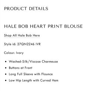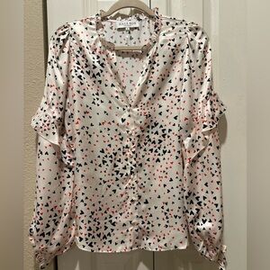 NWOT 240$ Hale Bob LA Layla Silk blend Blouse Heart Print Ruffle Romantic , size S