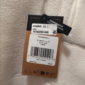 North face white 1/4 zip fleece. Brand new with tags. Size L slightly cropped fit