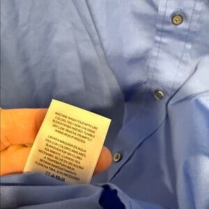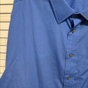 Stylish blue button-down shirt by George. Ideal for casual wear or business. Features a chest pocket and long sleeves. Really nice color. Not a faded out blue.