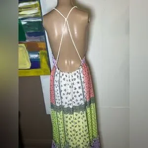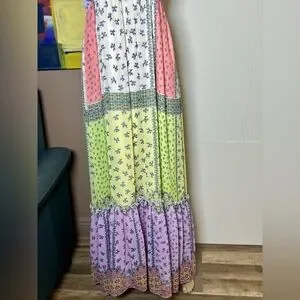 Forever 21 Boho Floral Patchwork Tiered Maxi Dress - Small