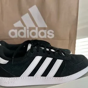 Classic Adidas Breaknet Sleek shoes. Black with white stripes. Ideal for everyday style.