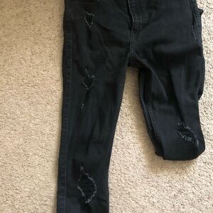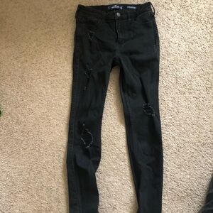 Hollister brand black distressed Highrise skinny jeans size 5R. Jeans have purposeful distressing on front. No stains or smells. Back pockets are slightly droopy as pictured. From a smoke free house.