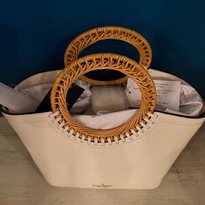 Brand new with tags. The Harbor Small Tote is crafted in soft pebbled leather with a structured silhouette and natural woven top handles for an elevated, modern look.
