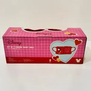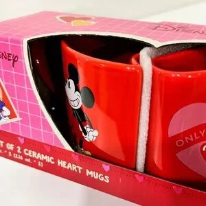 Disney Classic Mickey & Minnie Interlocking Heart Mug Set Couples Gift in Box