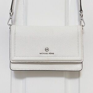 Michael Kors Jet Set Small Pebbled Leather Smartphone Crossbody Bag Optic White