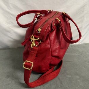 the Sak Cherry Red Pebbled Leather Crossbody Shoulder Bag with Gold Hardware