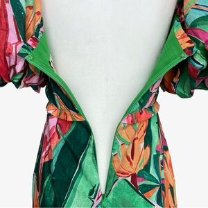 FARM Rio Banana Foliage Multicolor Puffed Sleeve Midi Dress XS NWT