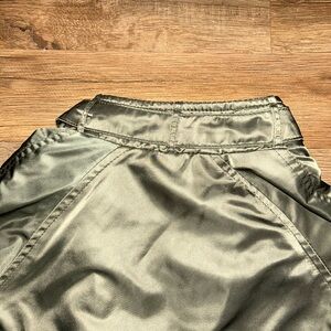 Chic sage bomber jacket with ribbed cuffs. Lightweight and versatile. Ideal for layering.
