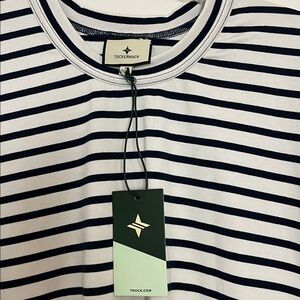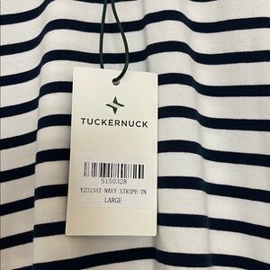 Size large, new with tags, but does have a small subtle brown mark on the center front chest which may come off in the wash, I haven’t tried it since the tags are attached, 95% cotton, 5% spandex, measures 22.5 inches across the chest, 24.75 inches across the bottom band, 25.5 inch shoulder to hem length, see my other listings for more great Tuckernuck items, bundle to save.