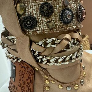 Karma of Charme Bohemian boho Italian leather embellished mixed metals stones chains luxury luxe natural statement boots gypsy western Django Dream ankle boots