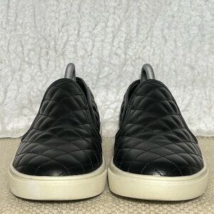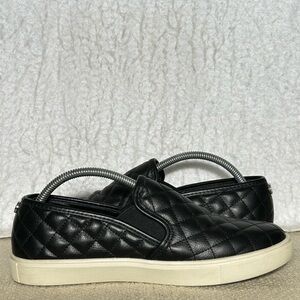 Steve Madden Womens Ecentrcq Black Quilted SlipOn Fashion Sneakers Shoes. Color: Black. Pre-owned Condition - refer to pictures for description of shoes. No Rips or Tears. Smoke-Free. PU Upper, PU Lining & Sock, Leather Flocked.