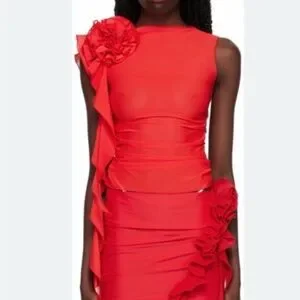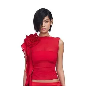 This elegant red sleeveless top features a stylish floral accent, perfect for any occasion. Its vibrant color adds a touch of sophistication to your wardrobe.