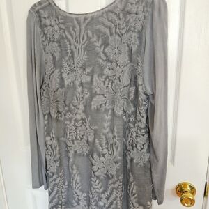 Soft Surroundings Grey Floral Embroidered Tunic Top Boho Classy Elegant 100%silk