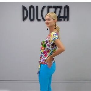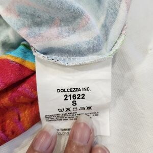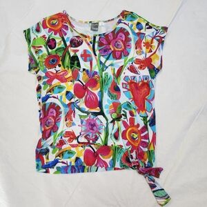 Dolcezza Size Small Pink Red Graphic Tie Front Blouse