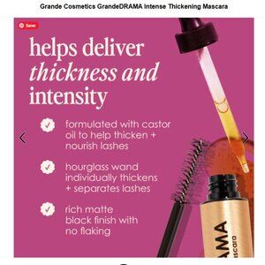 Say goodbye to thin, wimpy lashes. GrandeDRAMA's buildable, no-flake, vegan formula instantly lifts, lengthens, and adds volume to your lashes like never before. Plus, it's infused with castor oil, a tried-and-true favorite that is best known for its use as a DIY treatment for thick, healthy lashes.