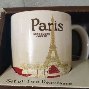 Cute PARIS & FRANCE Demitasse SET of 2 Starbucks Brand New with Box 3oz. mini mugs (the box is a little damaged). Look at the pics for measurements and more details. Any questions let me know please.