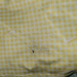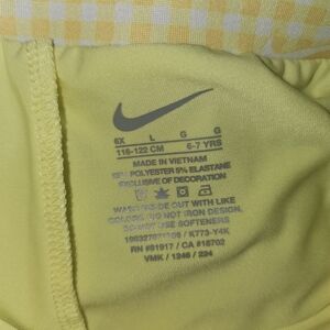 Nike set with a white tank top featuring a vibrant logo. Paired with a yellow checkered skirt. Ideal for casual wear.