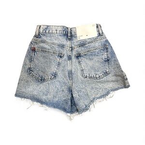 Super cute and trendy BDG by Urban Outfitters high-rise A-line denim shorts in a light acid-wash finish. These shorts feature raw frayed hems, light distressing, and a flattering wide-leg A-line cut that gives extra comfort and style.