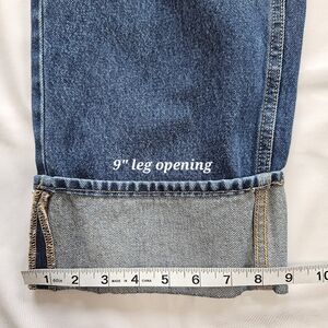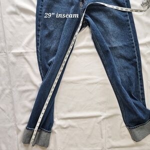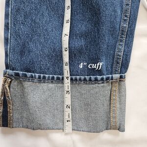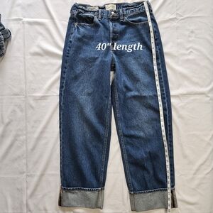 Approximate measurements: 15" wasit, 11" rise, 40" length, 29" inseam, 9" leg opening, 4" cuff