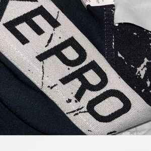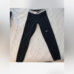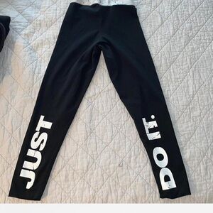 Dynamic Nike leggings for kids. Navy with striking white text. Ideal for active wear.