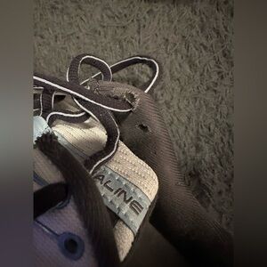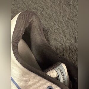 Bottoms and outer of the shoes are in excellent condition. Some wear to the material on the insides (see photos). The wear does not go all the way through and is not noticeable when worn. Very comfortable shoes!