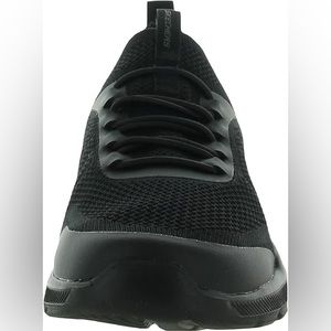 Elevate your athletic style with these Sketchers sneakers for men. Featuring a sleek black on black lace-up closure, and a comfortable standard shoe width, these shoes are perfect for any casual occasion. The textile and synthetic upper material paired with 100% synthetic rubber outsole material will ensure durability and long-lasting wear.