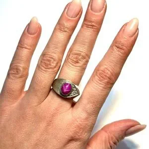 This elegant silver ring features a stunning purple gemstone, perfect for adding a touch of sophistication to any outfit.