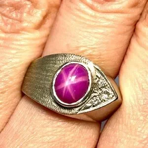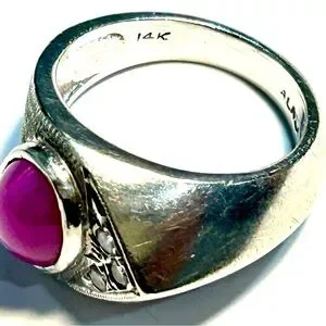 Vintage 14K White Gold Ruby Ring 6.5” Rare Design