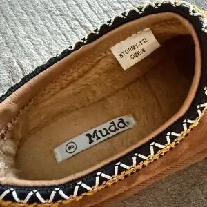 Mudd Brown Platform Mules with Black and Yellow Accents